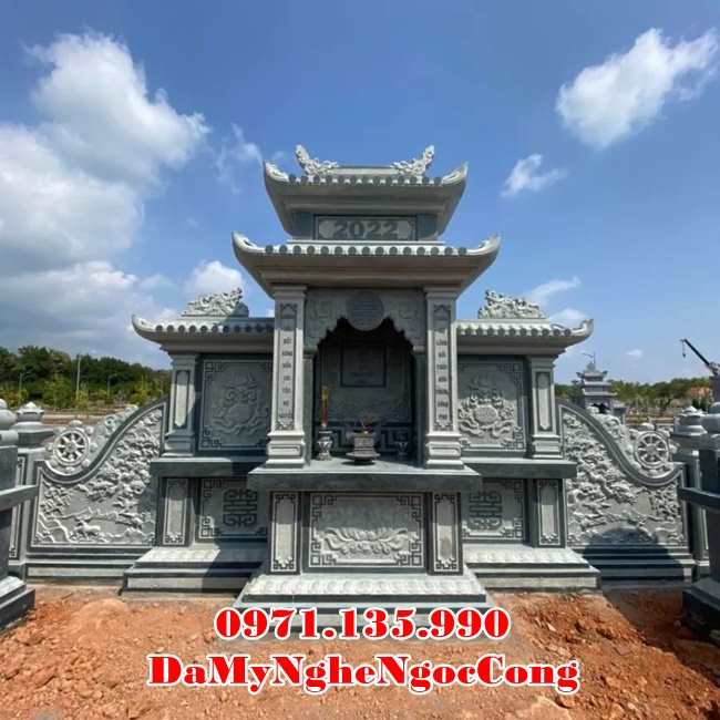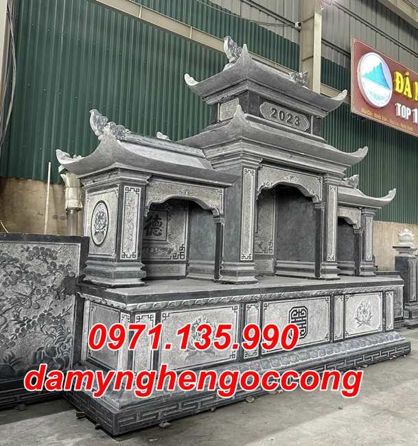Mẫu lăng thờ chung – Am thờ – Củng Thờ – Kỳ Đài Thờ – Lầu Thờ bằng đá đẹp nhất hiện nay với mẫu đơn giản một mái, hai hay ba mái che. Mẫu lăng thờ đá thường được chọn kích thước dựa trên số đỏ cung hoàng đạo trên thước lỗ ban.