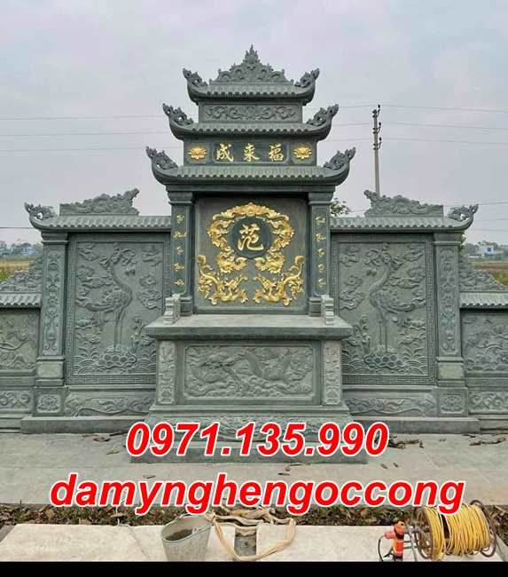 Am thờ – Lăng thờ có kích thước thiết kế là 367 x 107 x 320 bao gồm có cung thờ chính và cánh gió hai bên. Đây là mẫu lăng thờ có kích thước khá lớn phù hợp với các khu lăng mộ nghĩa trang gia đình có diện tích xây dựng rộng. Các số đo đều là số đẹp mang lại may mắn và tài lộc cho con cháu.
