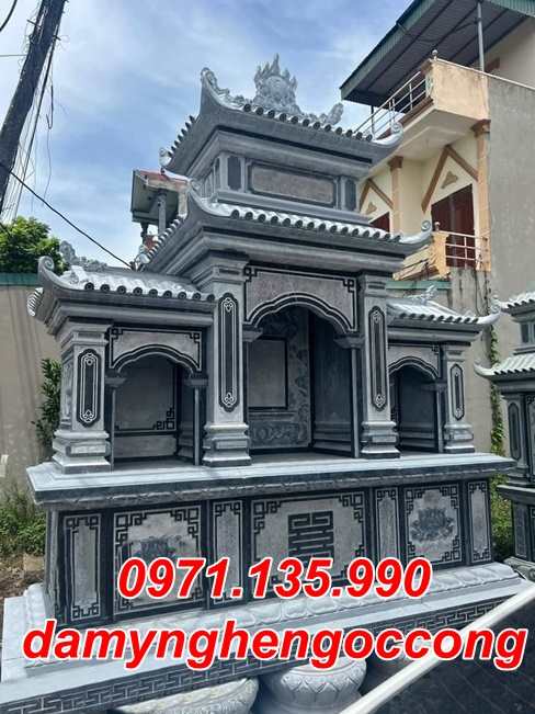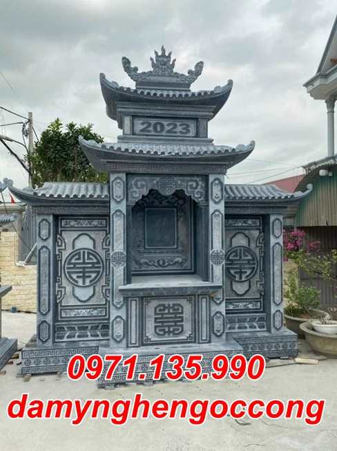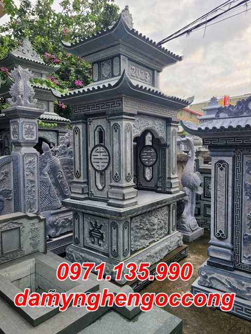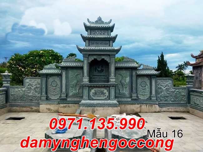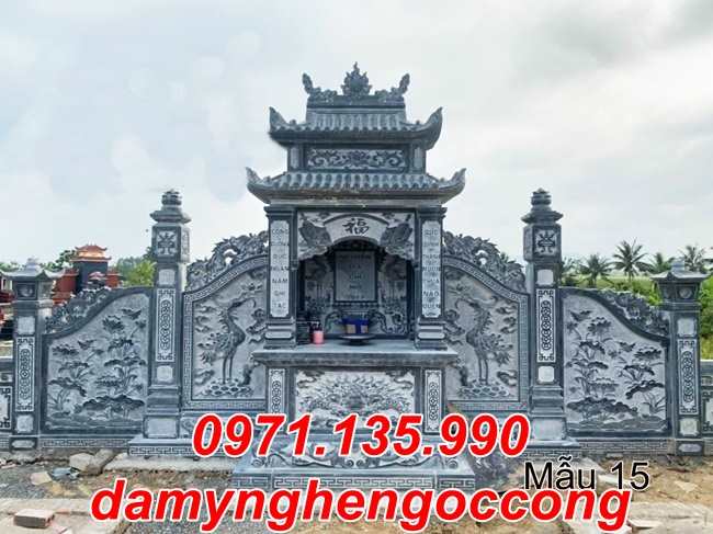 Mẫu lăng thờ chung – Am thờ – Củng Thờ – Kỳ Đài Thờ – Lầu Thờ bằng đá đẹp nhất hiện nay với mẫu đơn giản một mái, hai hay ba mái che. Mẫu lăng thờ đá thường được chọn kích thước dựa trên số đỏ cung hoàng đạo trên thước lỗ ban.