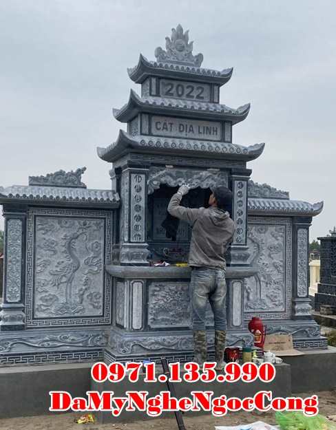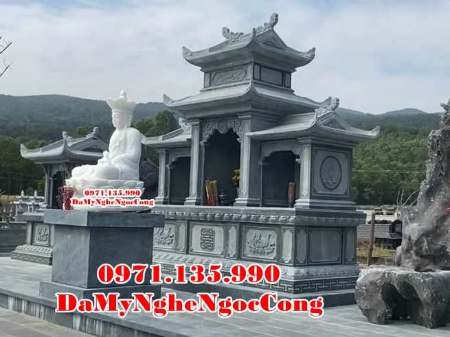 Mẫu lăng thờ chung – Am thờ – Củng Thờ – Kỳ Đài Thờ – Lầu Thờ bằng đá đẹp nhất hiện nay với mẫu đơn giản một mái, hai hay ba mái che. Mẫu lăng thờ đá thường được chọn kích thước dựa trên số đỏ cung hoàng đạo trên thước lỗ ban.