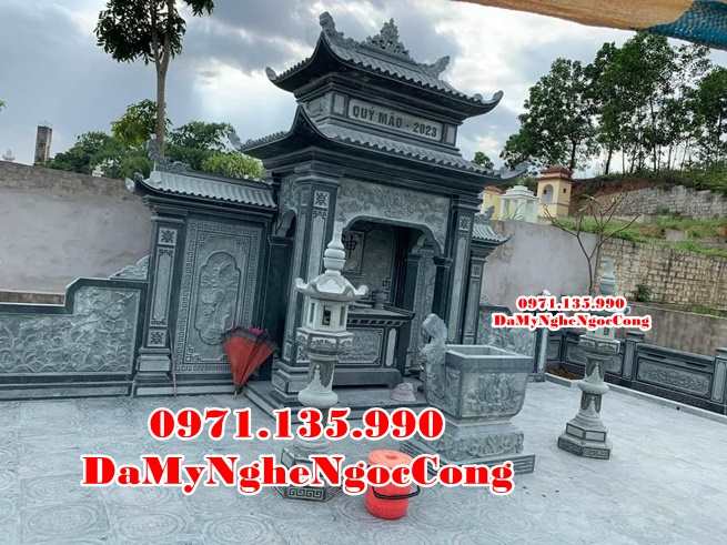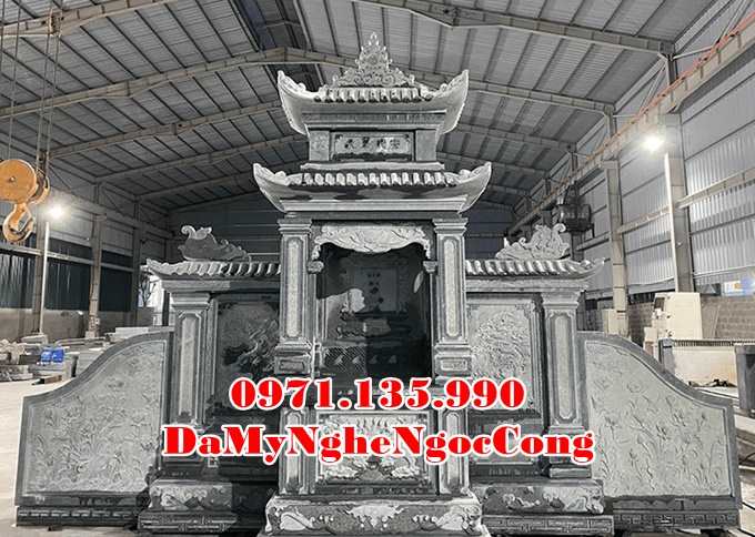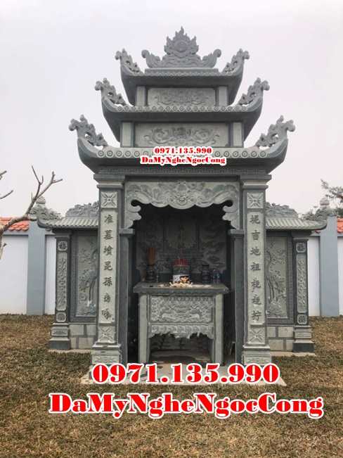 Mẫu lăng thờ chung – Am thờ – Củng Thờ – Kỳ Đài Thờ – Lầu Thờ bằng đá đẹp nhất hiện nay với mẫu đơn giản một mái, hai hay ba mái che. Mẫu lăng thờ đá thường được chọn kích thước dựa trên số đỏ cung hoàng đạo trên thước lỗ ban.