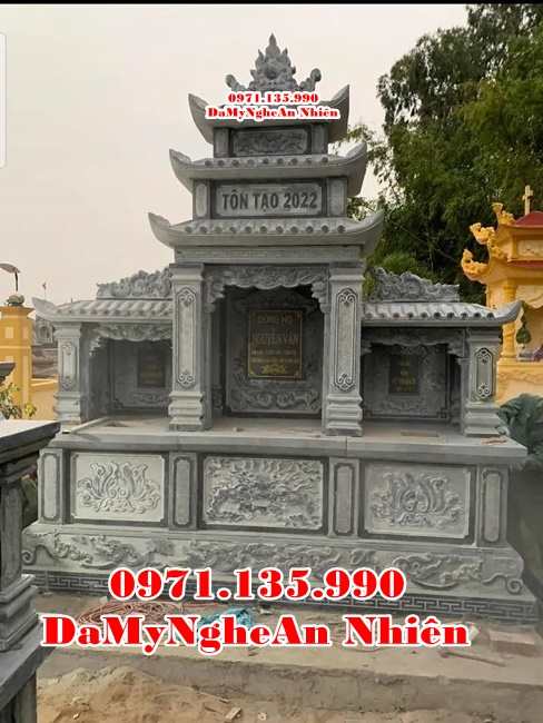 - Phong cách thiết kế: Gia đình có thể tùy chọn kiểu dáng của từng ngôi mộ theo yêu cầu, từ kiểu mộ 1 mái, 2 mái, đến mộ 3 mái. Các loại mộ này có thể được tùy chỉnh về chiều cao, kích thước, cũng như loại hoa văn chạm khắc.