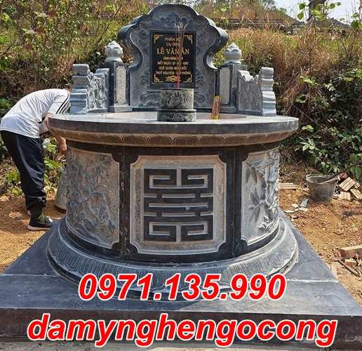 Mộ tròn mộ tam cấp tam sơn đơn giản còn thể làm giật nhiều cấp (3 cấp, 5 cấp, 7 cấp … ) và kích thước quan trọng đó là đường kính phủ bì của ngôi mộ. Đường kính mộ tròn nên làm là : 81 cm, 107 cm, 117 cm, 127 cm, 167 cm.Các ngôi mộ tròn lớn đã tồn tại từ lâu đời thì có thể làm lớn hơn như 232 cm, 303 cm, 330 cm, 390 cm …Mộ đôi đá dùng cho hai hoặc nhiều người, để có kích thước mộ đôi cân đối thì chiều mặt tiền thường lớn hơn hoặc bằng chiều sâu. Ví dụ một số kích thước mộ đôi theo thước Lỗ Ban 38,8 phong thủy như :