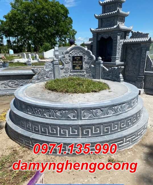 Mộ tròn mộ tam cấp tam sơn đơn giản còn thể làm giật nhiều cấp (3 cấp, 5 cấp, 7 cấp … ) và kích thước quan trọng đó là đường kính phủ bì của ngôi mộ. Đường kính mộ tròn nên làm là : 81 cm, 107 cm, 117 cm, 127 cm, 167 cm.Các ngôi mộ tròn lớn đã tồn tại từ lâu đời thì có thể làm lớn hơn như 232 cm, 303 cm, 330 cm, 390 cm …Mộ đôi đá dùng cho hai hoặc nhiều người, để có kích thước mộ đôi cân đối thì chiều mặt tiền thường lớn hơn hoặc bằng chiều sâu. Ví dụ một số kích thước mộ đôi theo thước Lỗ Ban 38,8 phong thủy như :
