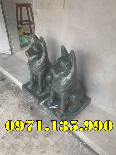 Tượng chó đá cao 107cm đá xanh đen đẹp giá 38 triệu / cặp.