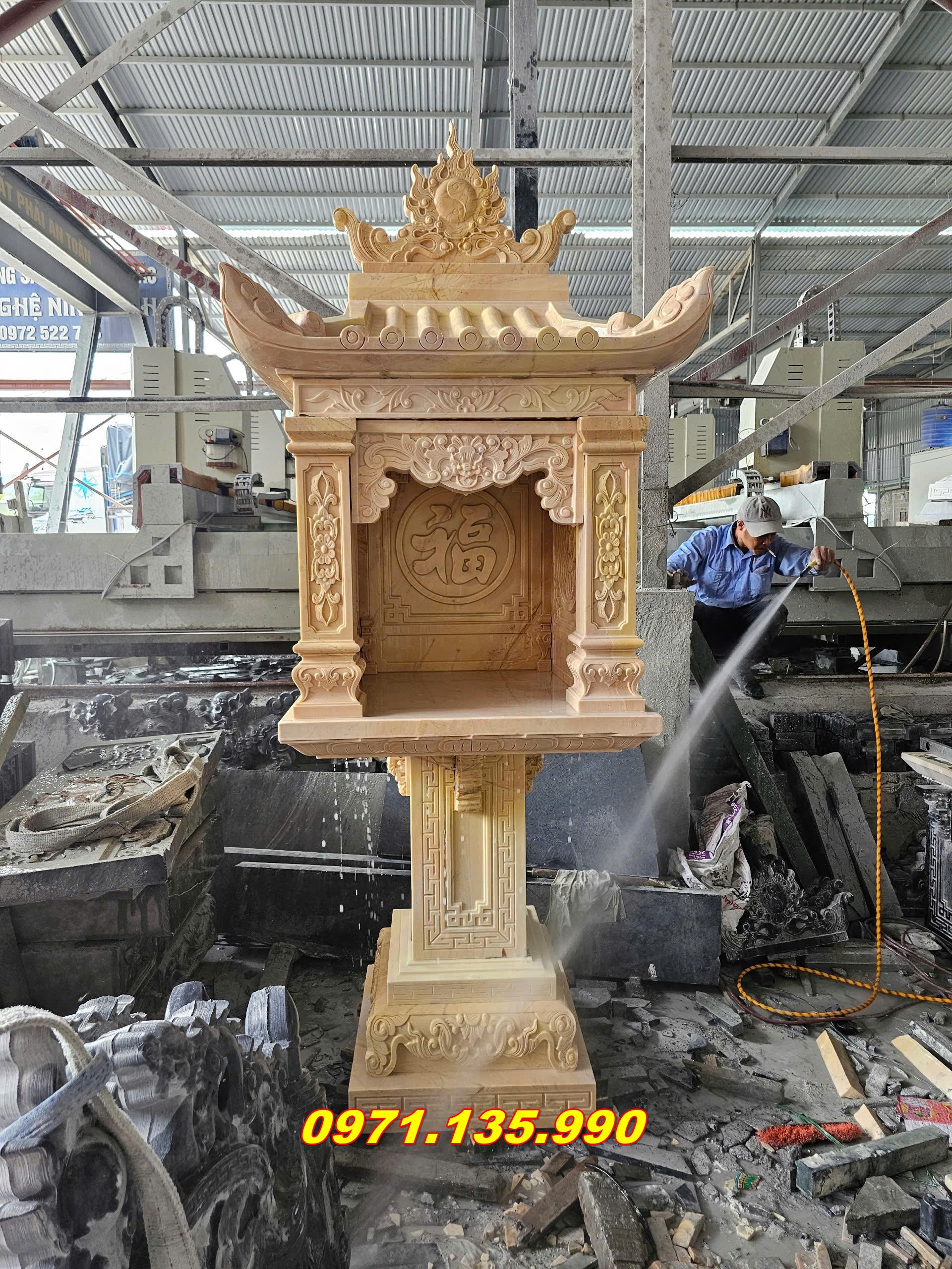 Cơ sở ĐÁ MỸ NGHỆ NGỌC CÔNG chuyên sản xuất và cung cấp bàn thờ thiên đá ngoài trời giá xưởng, nhận giao hàng và lắp đặt tận nơi toàn TP.HCM.