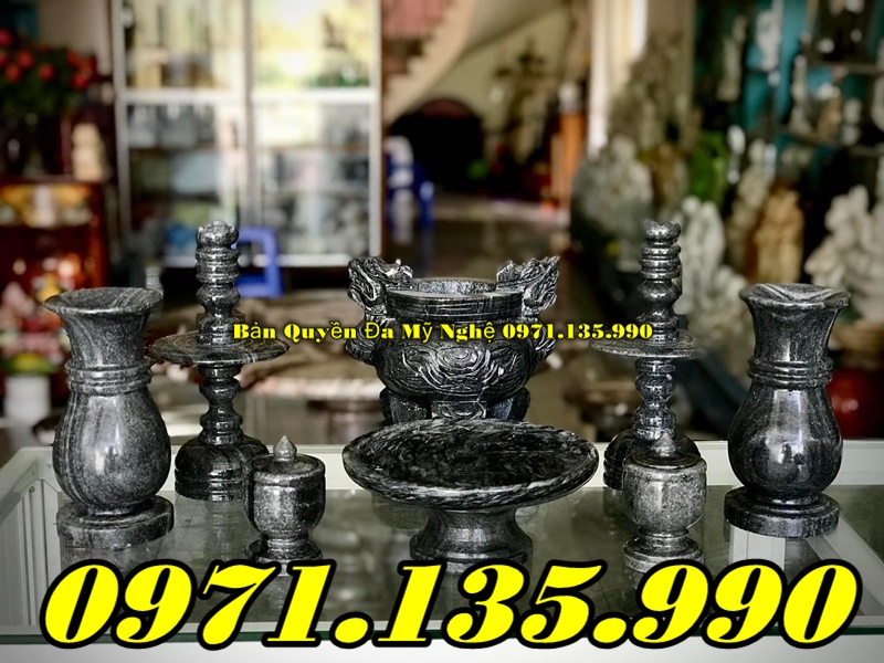 Loại đá được dùng phổ biến đó là đá Ninh Bình – Đá Non Nước – Đá Nghệ An – Đá Bình Định- Đá Phú Yên- Đá Ấn Độ Nhập Khẩu. Ưu điểm lớn nhất của nó là độc ứng cao, hạn chế thấm nước và dễ dàng chạm khắc hoa văn. Đặc biệt là với gam màu đá xanh đen cổ kính, hợp phong thủy thờ cúng.