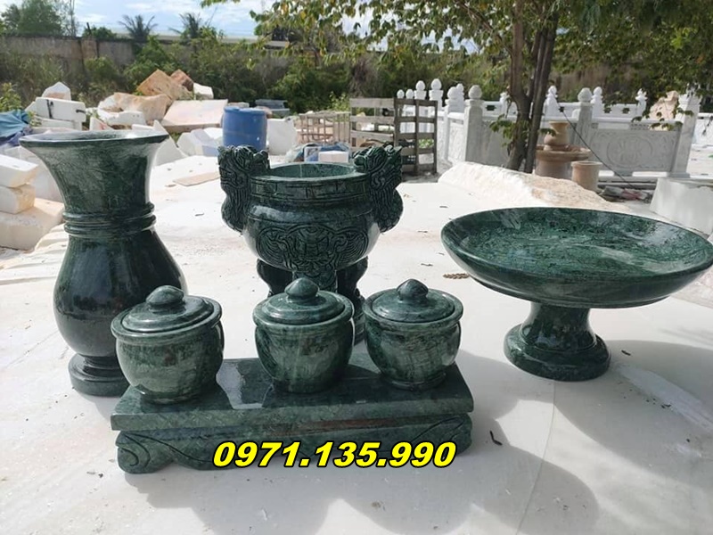 - Đá ngọc: Một số bộ bát hương và lư hương được chế tác từ đá ngọc, như ngọc bích, mang lại vẻ đẹp sang trọng và quý phái. Loại đá này không chỉ có giá trị thẩm mỹ cao mà còn có ý nghĩa phong thủy tốt, mang lại may mắn, tài lộc cho gia chủ.