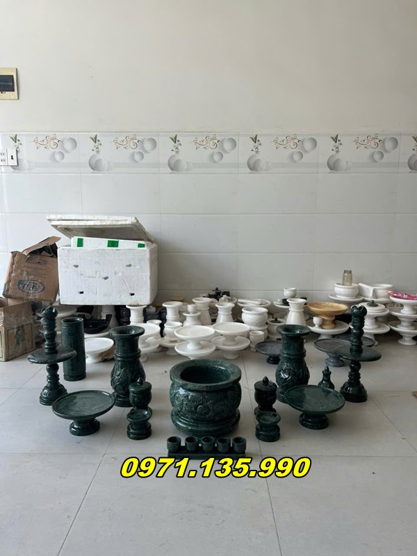 - Đá ngọc: Một số bộ bát hương và lư hương được chế tác từ đá ngọc, như ngọc bích, mang lại vẻ đẹp sang trọng và quý phái. Loại đá này không chỉ có giá trị thẩm mỹ cao mà còn có ý nghĩa phong thủy tốt, mang lại may mắn, tài lộc cho gia chủ.