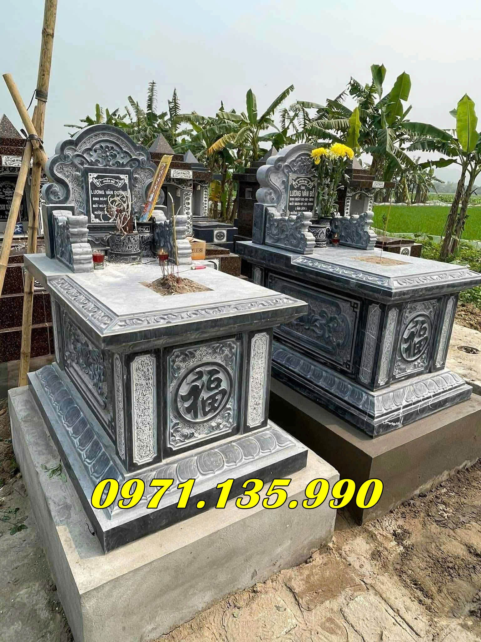 Các mẫu mộ được chế tác từ đá xanh Thanh Hóa, đá granite tự nhiên đảm bảo độ bền hàng trăm năm.