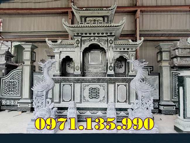 Mẫu lăng thờ chung – Am thờ – Củng Thờ – Kỳ Đài Thờ – Lầu Thờ bằng đá đẹp nhất hiện nay với mẫu đơn giản một mái, hai hay ba mái che. Mẫu lăng thờ đá thường được chọn kích thước dựa trên số đỏ cung hoàng đạo trên thước lỗ ban.