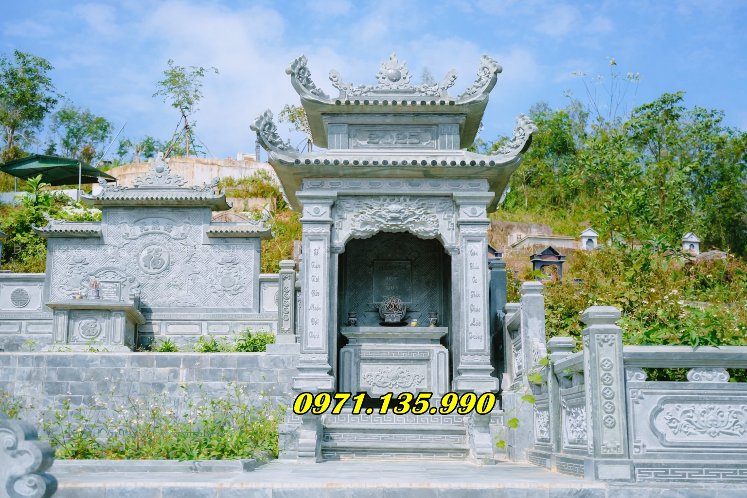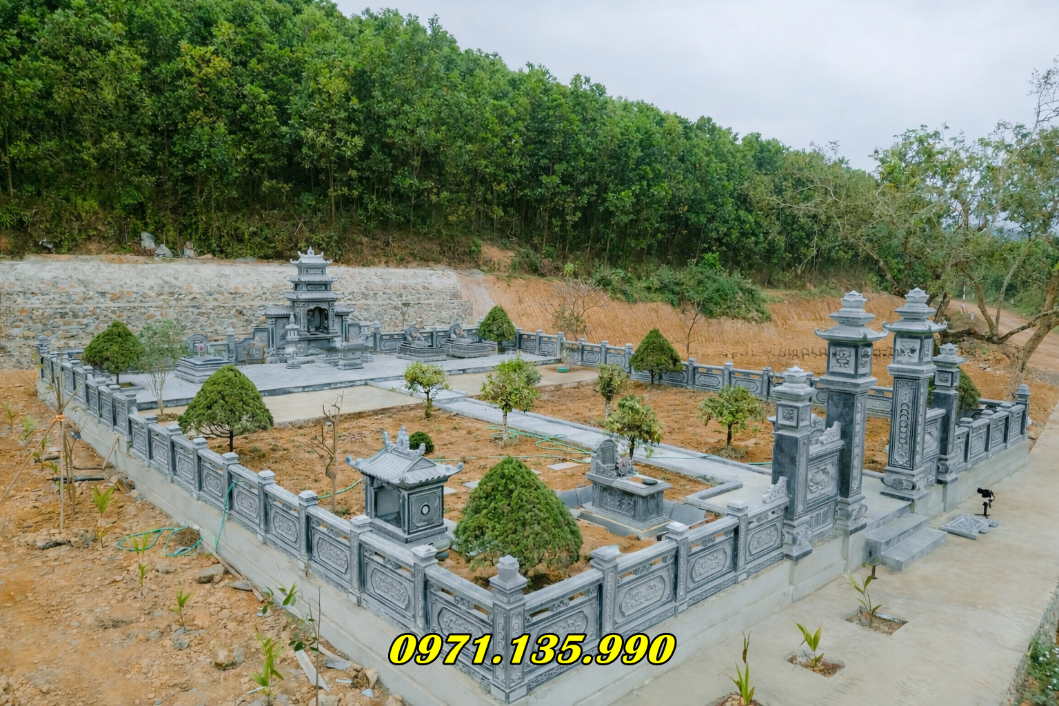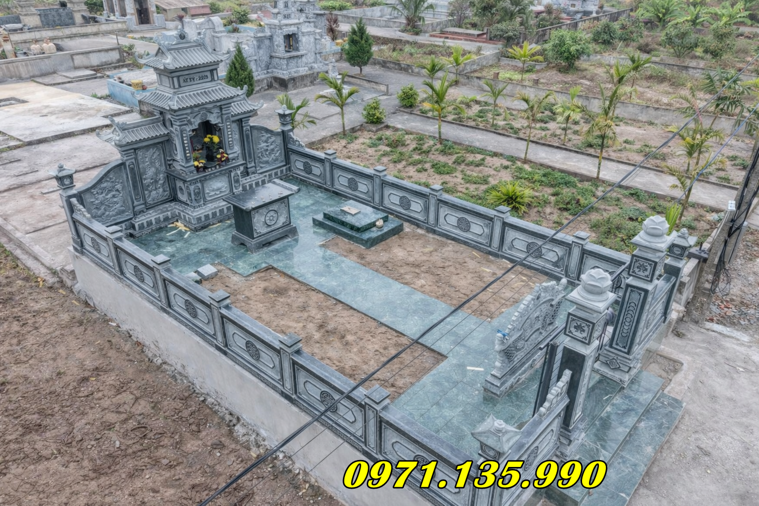 Sự kết hợp hài hòa giữa các hạng mục giúp tạo nên một khu lăng mộ trang nghiêm và bền vững.