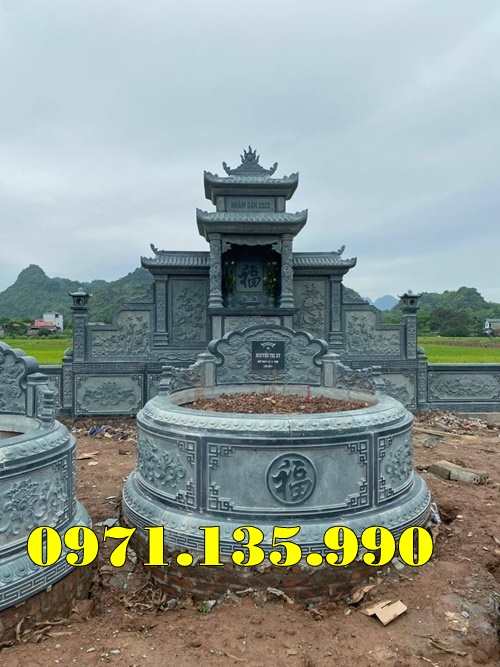Mộ tròn mộ tam cấp tam sơn đơn giản còn thể làm giật nhiều cấp (3 cấp, 5 cấp, 7 cấp … ) và kích thước quan trọng đó là đường kính phủ bì của ngôi mộ. Đường kính mộ tròn nên làm là : 81 cm, 107 cm, 117 cm, 127 cm, 167 cm.Các ngôi mộ tròn lớn đã tồn tại từ lâu đời thì có thể làm lớn hơn như 232 cm, 303 cm, 330 cm, 390 cm …Mộ đôi đá dùng cho hai hoặc nhiều người, để có kích thước mộ đôi cân đối thì chiều mặt tiền thường lớn hơn hoặc bằng chiều sâu. Ví dụ một số kích thước mộ đôi theo thước Lỗ Ban 38,8 phong thủy như :