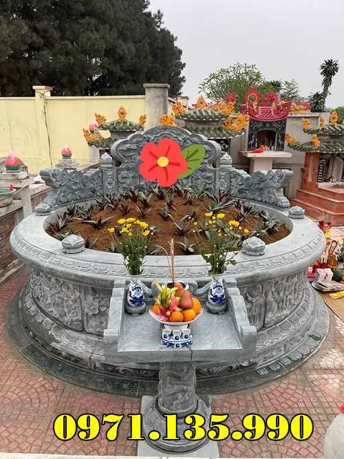 - Mô tả: Mộ tròn bằng đá mang hình dáng tròn đầy, tượng trưng cho sự viên mãn và hoàn hảo. Hình tròn cũng liên quan đến chu kỳ của cuộc sống, biểu thị cho sự liên kết chặt chẽ giữa các thế hệ. Mộ tròn thường được chạm khắc hoa văn tinh tế, kết hợp với các họa tiết truyền thống như hoa sen, tứ linh (long, lân, quy, phụng).