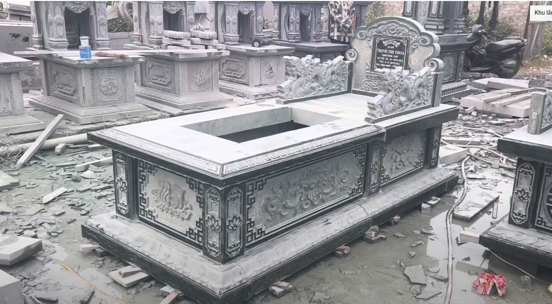 - Chất liệu bền vững: Mộ thường được làm từ đá xanh, đá hoa cương (granite), hoặc đá trắng, có độ bền cao, không bị ảnh hưởng bởi thời tiết.