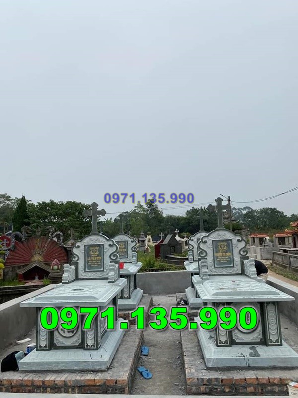 - Mô tả: Mộ Công Giáo bằng đá được thiết kế đặc biệt với hình ảnh cây thánh giá và các hoa văn tôn giáo như thiên thần, cây nho. Mẫu mộ này mang tính tôn giáo sâu sắc, thể hiện lòng tôn kính và đức tin của gia đình.