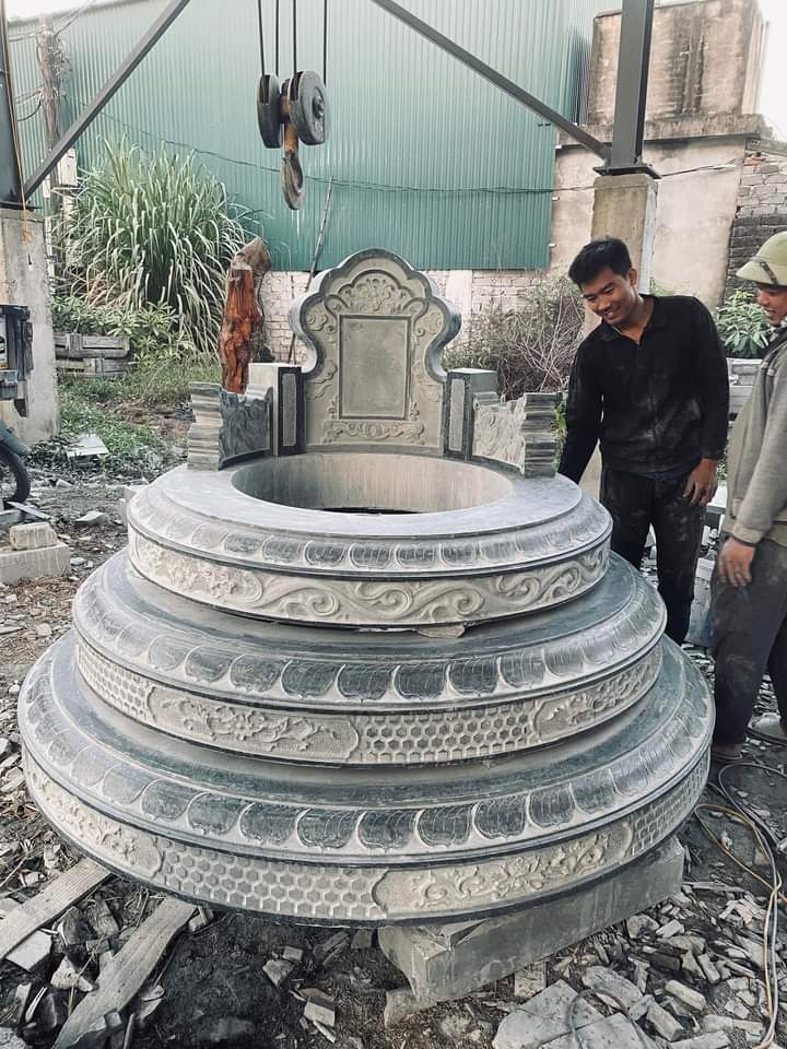 - Mô tả: Mộ tròn bằng đá mang hình dáng tròn đầy, tượng trưng cho sự viên mãn và hoàn hảo. Hình tròn cũng liên quan đến chu kỳ của cuộc sống, biểu thị cho sự liên kết chặt chẽ giữa các thế hệ. Mộ tròn thường được chạm khắc hoa văn tinh tế, kết hợp với các họa tiết truyền thống như hoa sen, tứ linh (long, lân, quy, phụng).