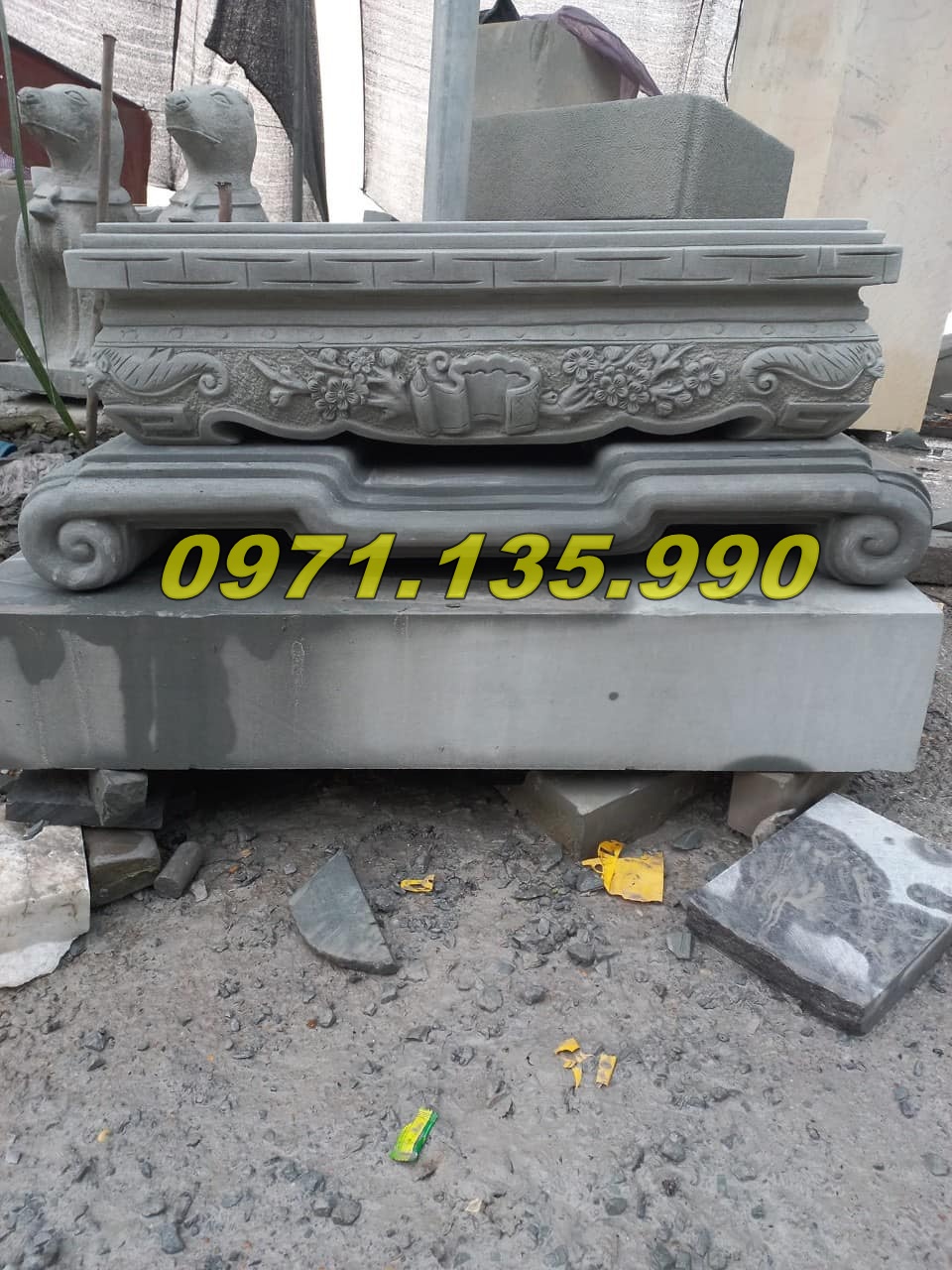 Có thể làm từ đá xanh, đá trắng, hoặc đá cẩm thạch.