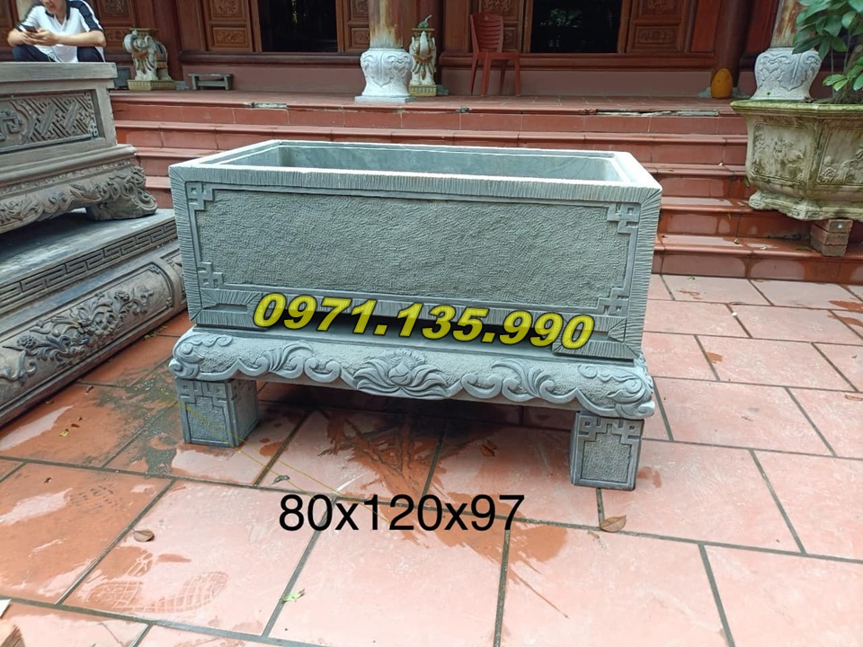 | Chậu dài để sân vườn | 100 x 40 x 50 cm | Đá xanh/đá vàng | 25.000.000 – 90.000.000 VNĐ |