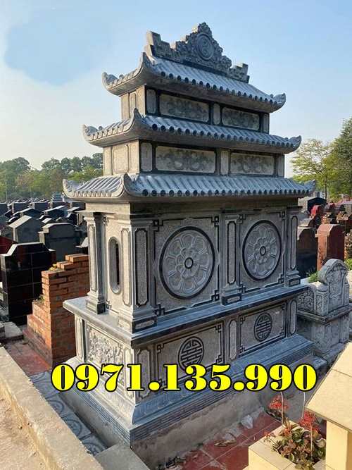 Mộ tròn mộ tam cấp tam sơn đơn giản còn thể làm giật nhiều cấp (3 cấp, 5 cấp, 7 cấp … ) và kích thước quan trọng đó là đường kính phủ bì của ngôi mộ. Đường kính mộ tròn nên làm là : 81 cm, 107 cm, 117 cm, 127 cm, 167 cm.Các ngôi mộ tròn lớn đã tồn tại từ lâu đời thì có thể làm lớn hơn như 232 cm, 303 cm, 330 cm, 390 cm …Mộ đôi đá dùng cho hai hoặc nhiều người, để có kích thước mộ đôi cân đối thì chiều mặt tiền thường lớn hơn hoặc bằng chiều sâu. Ví dụ một số kích thước mộ đôi theo thước Lỗ Ban 38,8 phong thủy như :