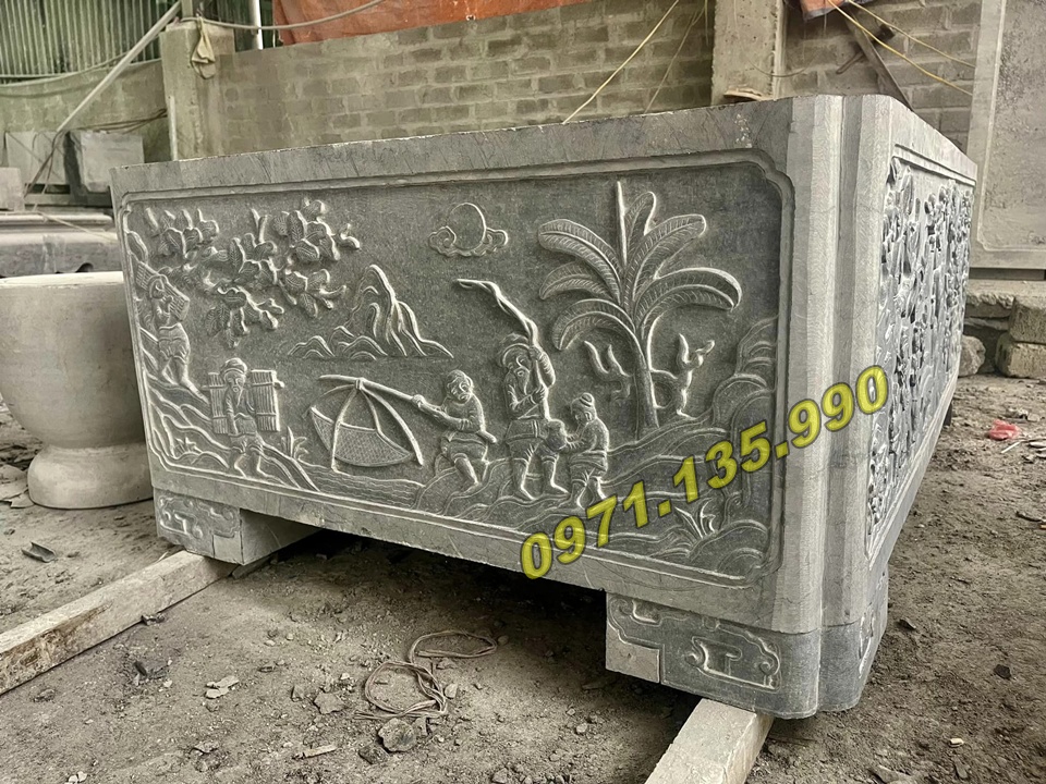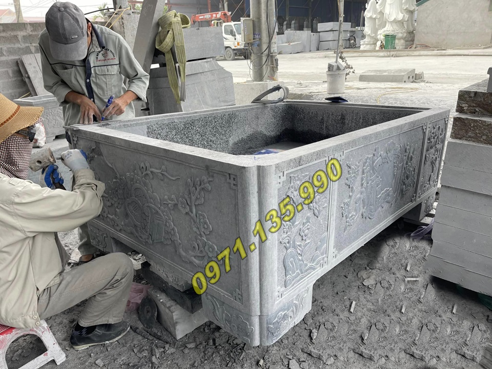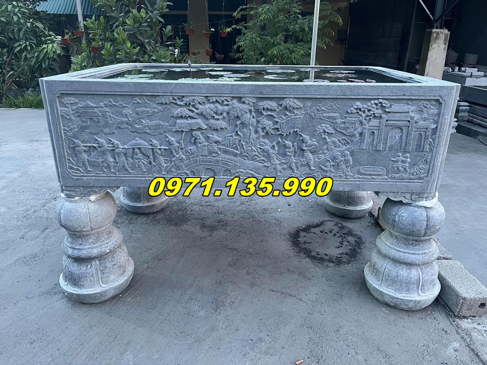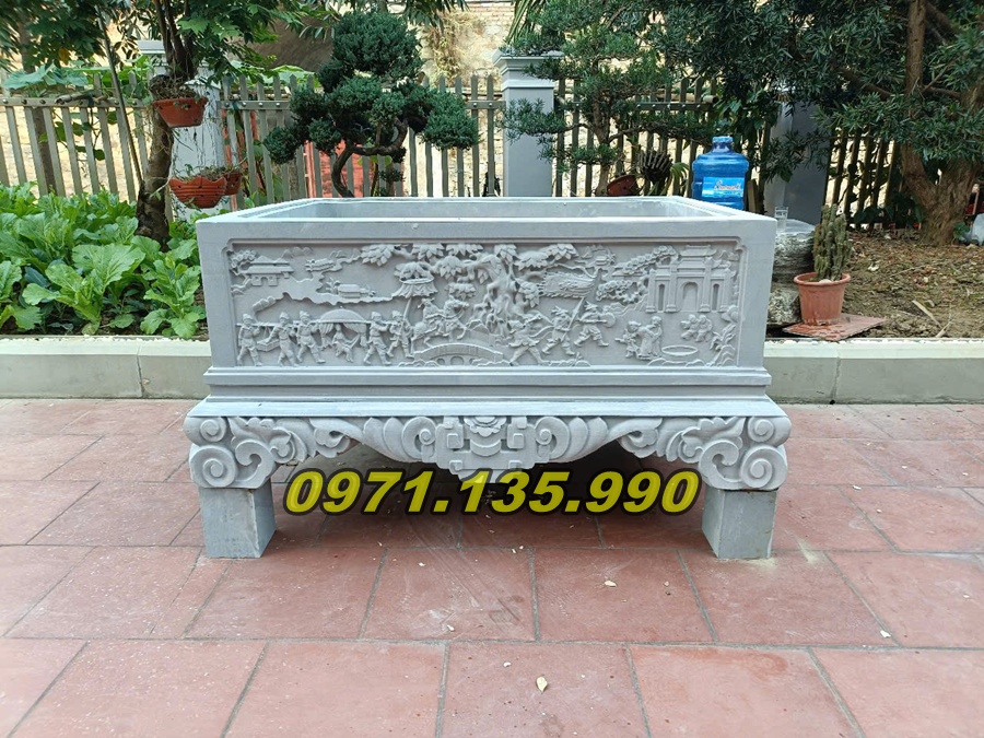 | Chậu dài để sân vườn | 100 x 40 x 50 cm | Đá xanh/đá vàng | 25.000.000 – 90.000.000 VNĐ |