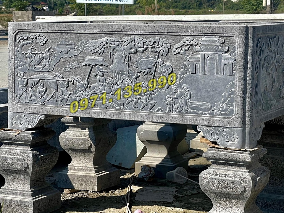 Có thể làm từ đá xanh, đá trắng, hoặc đá cẩm thạch.