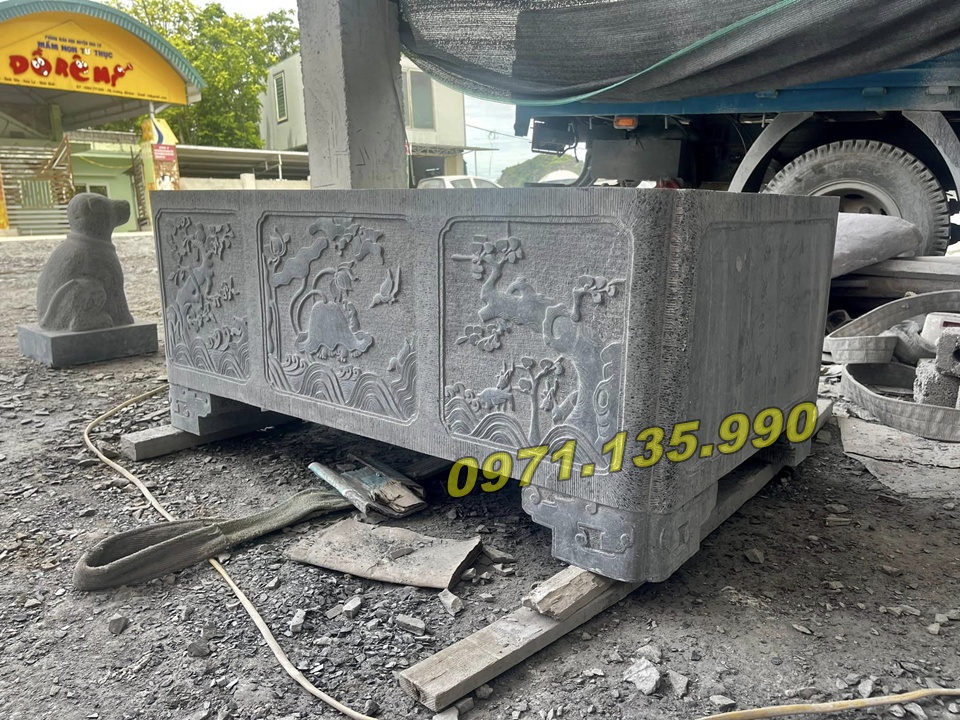 Đá xanh Thanh Hóa/Ninh Bình: Bền chắc, màu xám xanh tự nhiên, dễ chạm khắc.