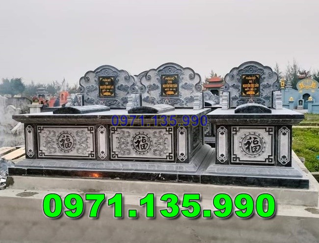55^ Mẫu Mộ Đá1 Mái 2Mái 3Mái Đôi Đẹp Bán tại Bình Phước : còn được gọi mồ mả gia đình ông bà bố ba cha mẹ anh em cất để đựng hũ tro hài cốt hay quan quách mộ sang cát hay mộ chôn tươi, hai ba bốn năm ngôi liền nhau. Những mẫu mộ đôi gia đình được làm từ đá tự nhiên nguyên khối khác nhau như: đá xanh, đá ninh bình, đá thanh hóa, đá xanh rêu, đá vàng, đá trắng hay đá granite, kim sa, hoa cương,…