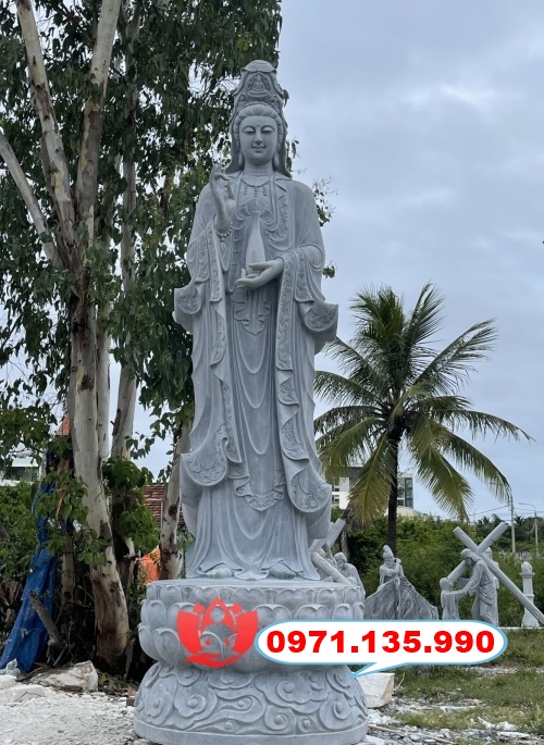🔶 2. Giá tượng Quan Âm đá cỡ trung – lớn (ngoài trời, sân vườn, chùa)