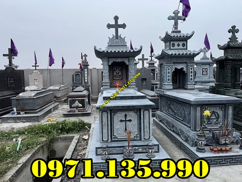- Biểu Tượng Công Giáo: Mộ đá đôi công giáo thường có các biểu tượng đặc trưng của đạo Công giáo như cây thánh giá, chén thánh, hay tượng Đức Mẹ Maria. Bia mộ thường có câu kinh thánh, tên thánh của người đã khuất.