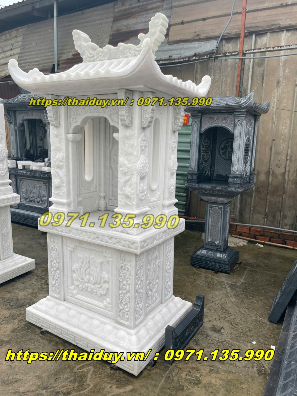 Giá miếu thờ phụ thuộc vào chất liệu đá, kích thước, mức độ chạm khắc và thiết kế mái (1, 2, 3 mái).