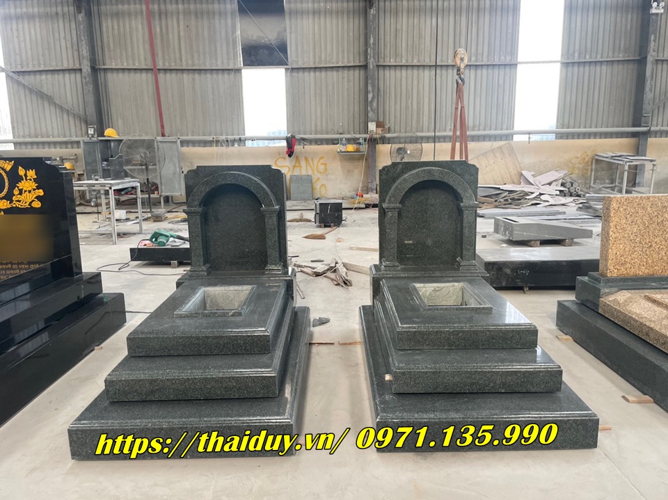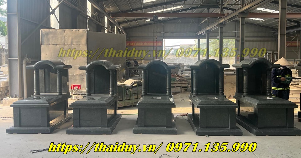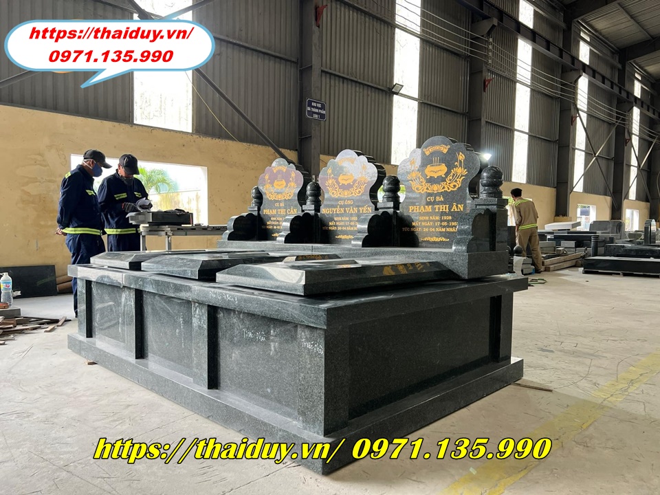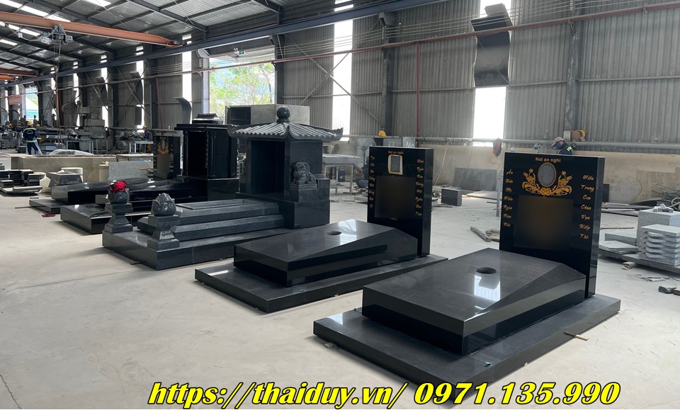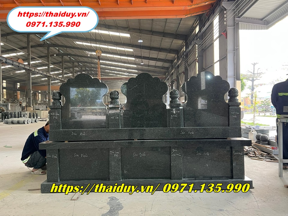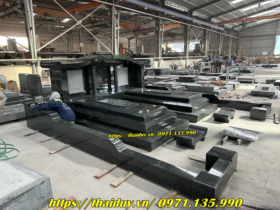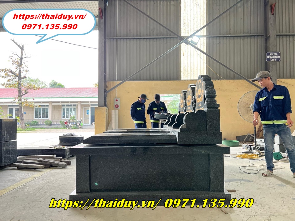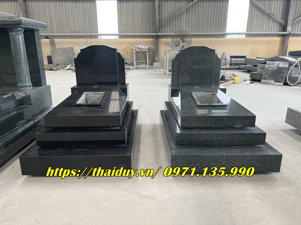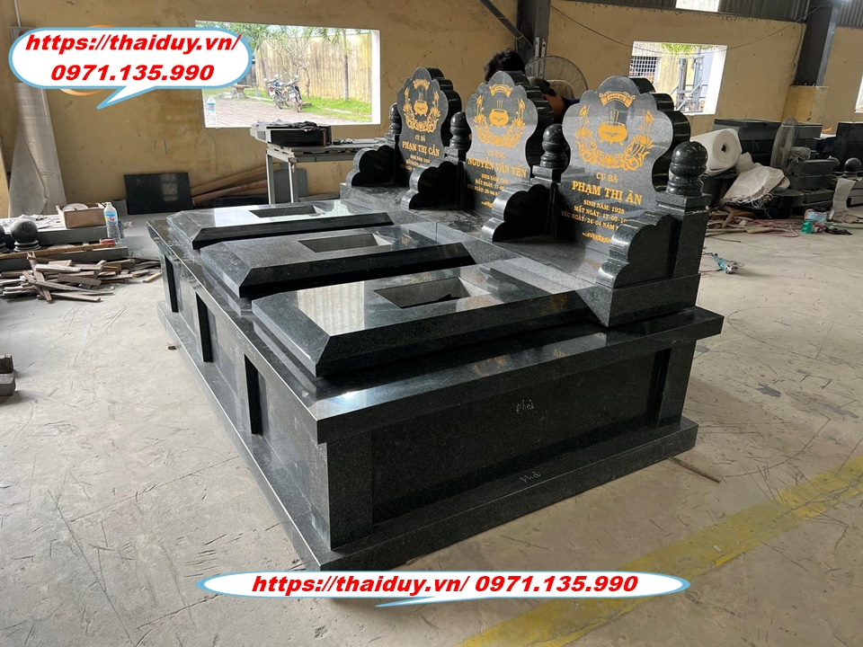 Chế tác mộ đá granite với nhiều kiểu dáng và kích thước khác nhau, từ mộ đơn, mộ đôi đến mộ tam cấp, lăng mộ.