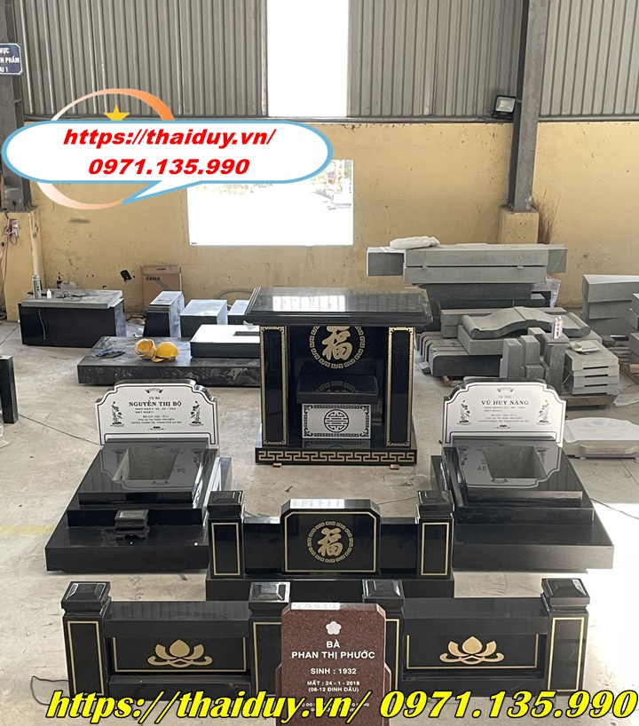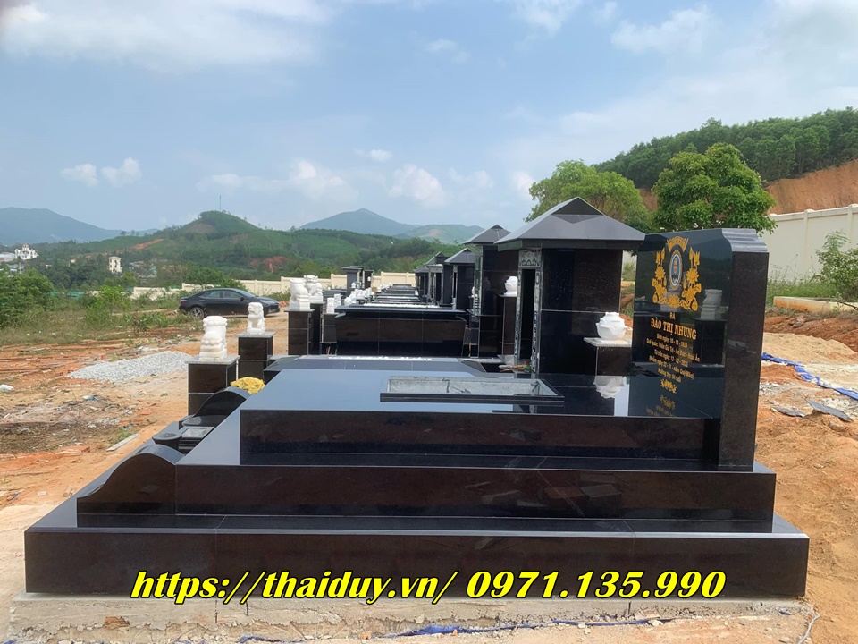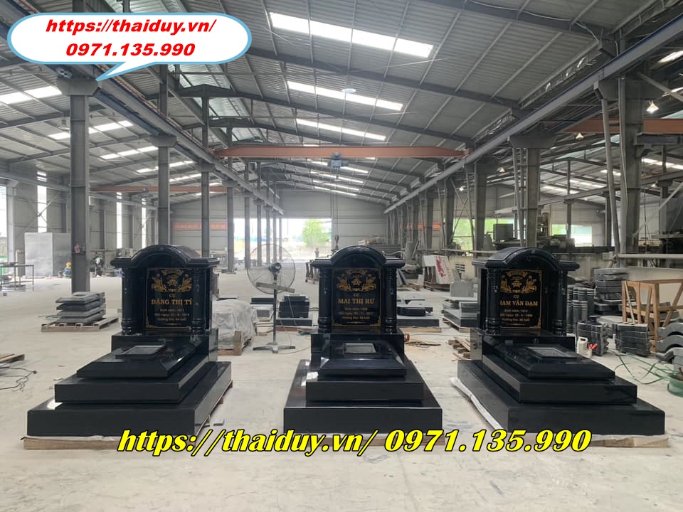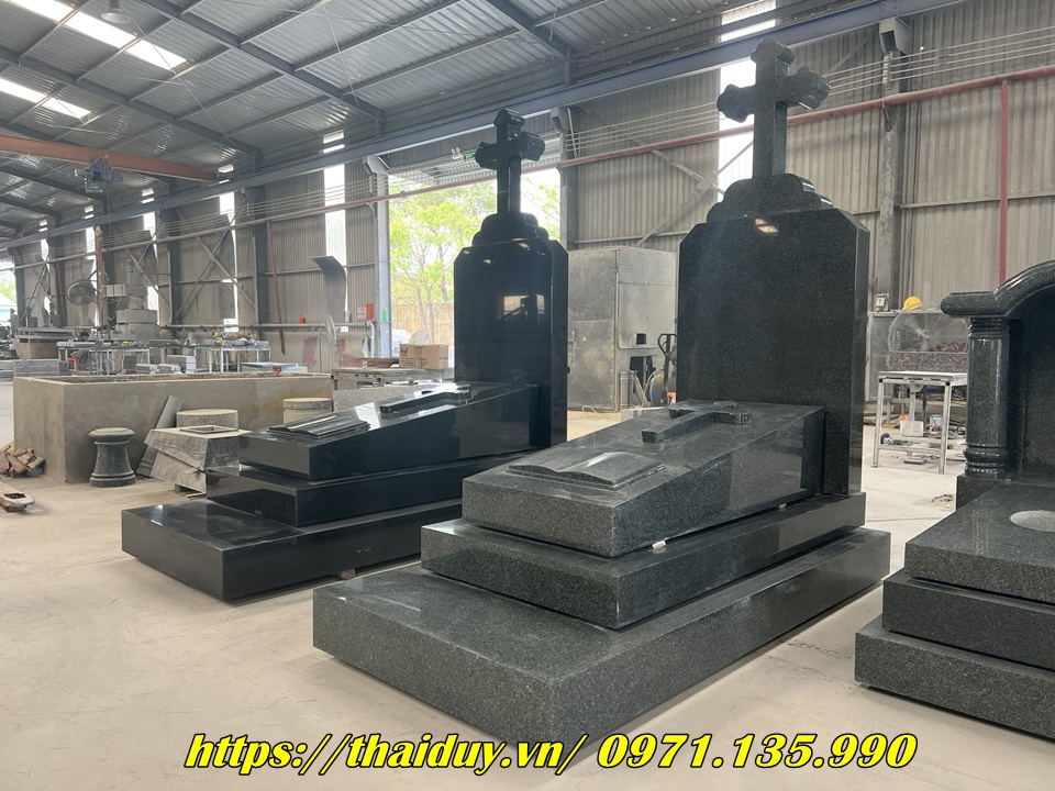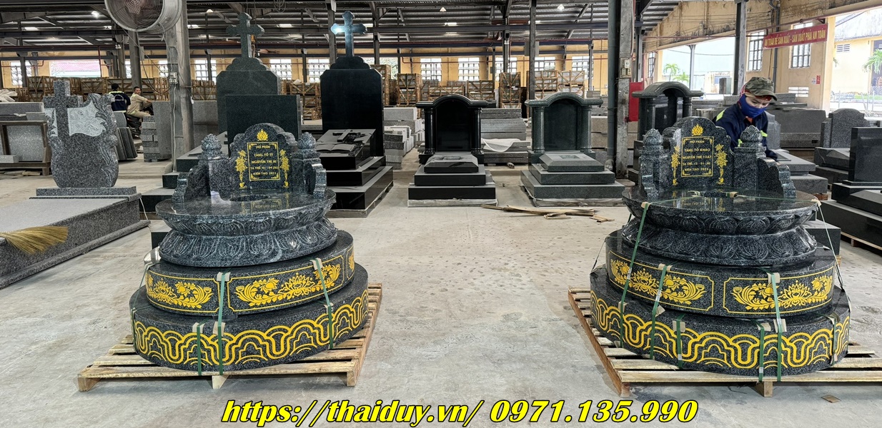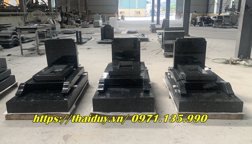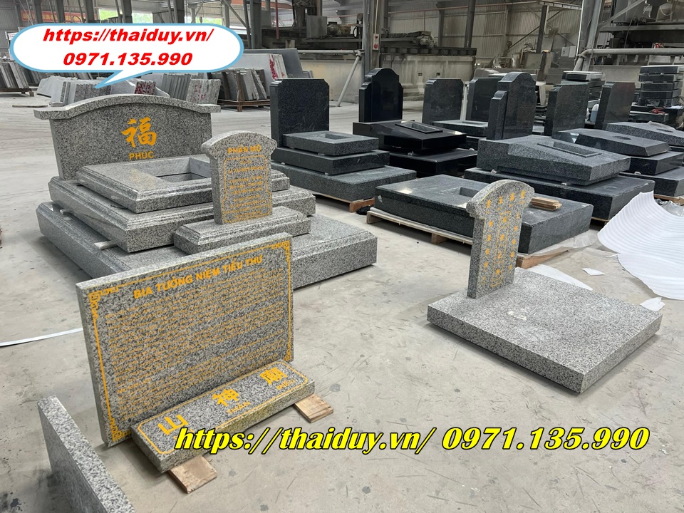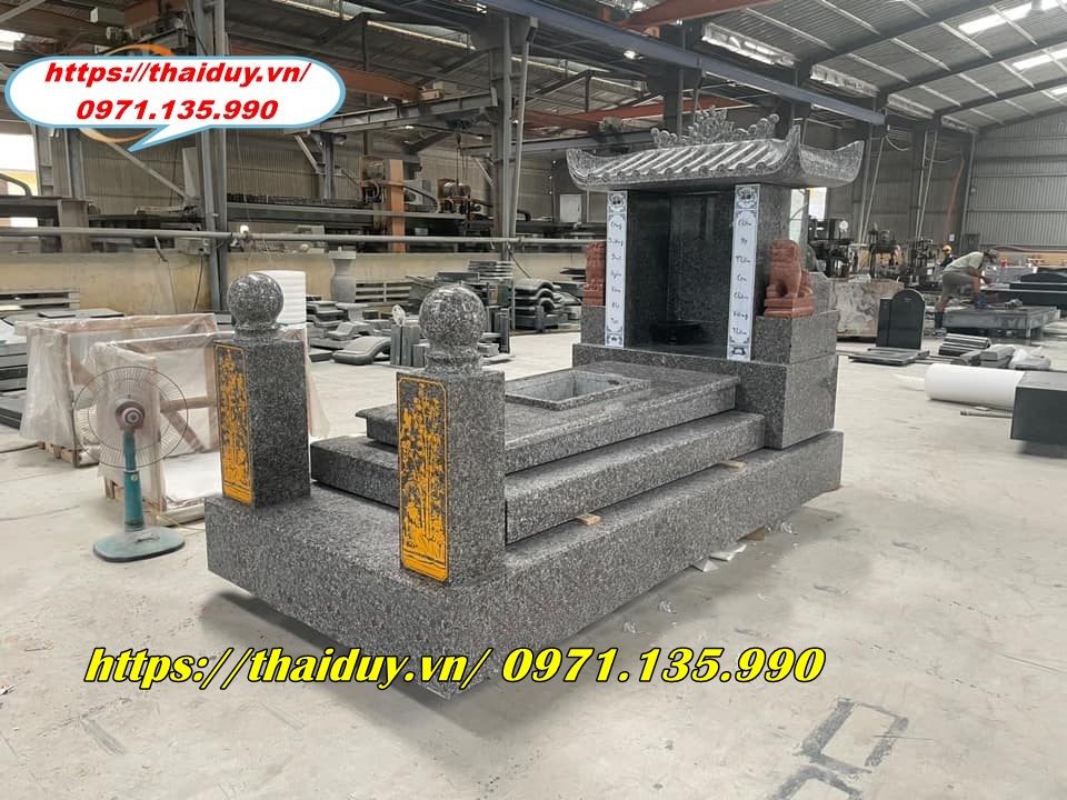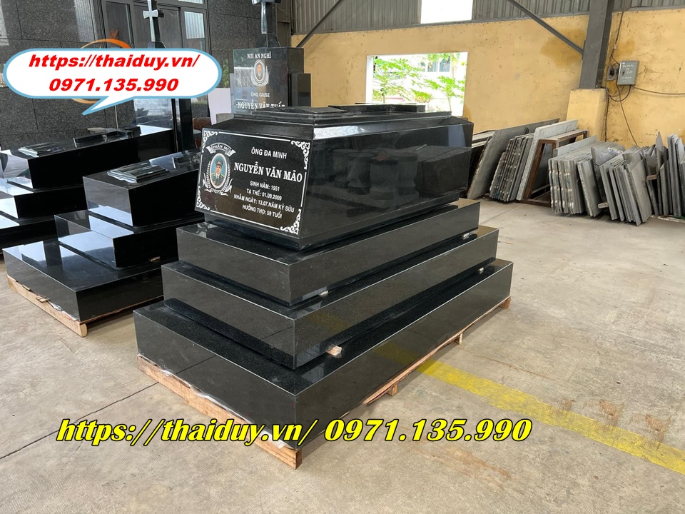 Chế tác mộ đá granite với nhiều kiểu dáng và kích thước khác nhau, từ mộ đơn, mộ đôi đến mộ tam cấp, lăng mộ.