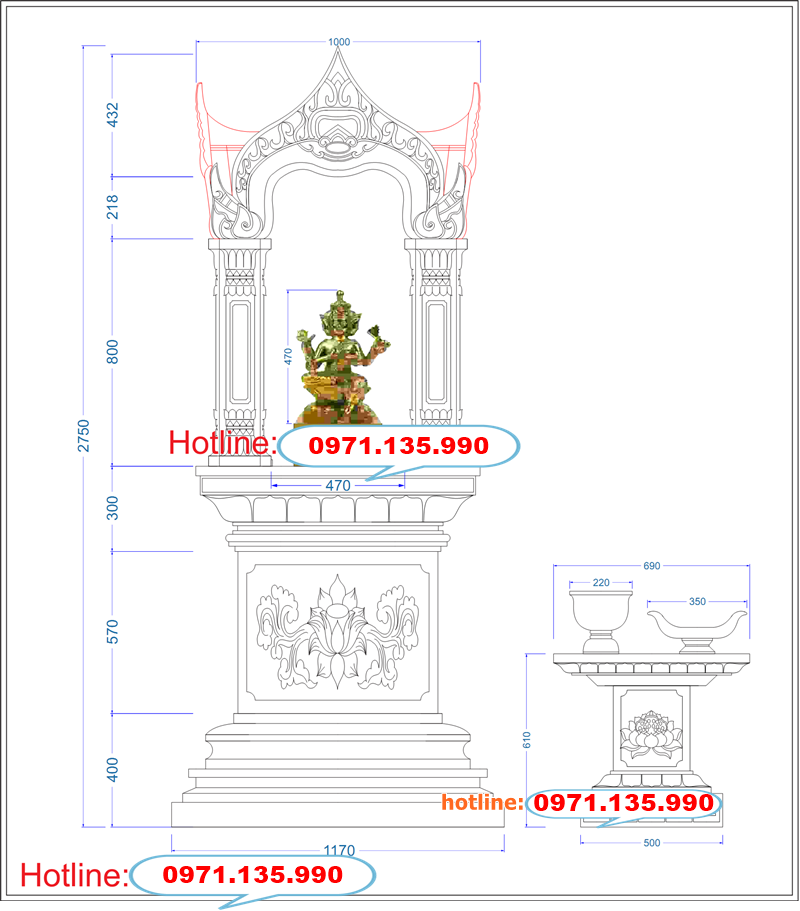 Dưới đây là cấu tạo chi tiết của bàn thờ Phật 4 mặt (bàn thờ đá tứ diện) mà bạn hỏi: