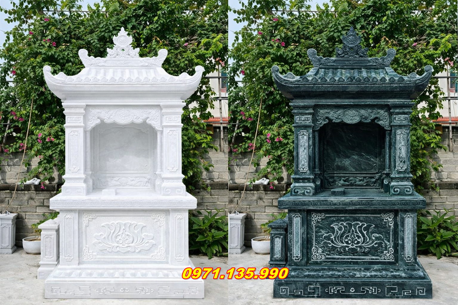 Tại Trà Ôn, các mẫu am thờ bằng đá thường được lựa chọn dựa trên hai tiêu chí chính: sự vững chãi và vẻ đẹp truyền thống. Những đường nét chạm khắc có thể tối giản hoặc cầu kỳ tùy sở thích, nhưng điểm chung là phải tạo được cảm giác thanh thoát, sạch sẽ và linh thiêng.