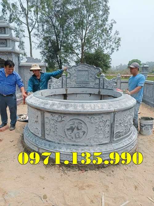 Mộ tròn mộ tam cấp tam sơn đơn giản còn thể làm giật nhiều cấp (3 cấp, 5 cấp, 7 cấp … ) và kích thước quan trọng đó là đường kính phủ bì của ngôi mộ. Đường kính mộ tròn nên làm là : 81 cm, 107 cm, 117 cm, 127 cm, 167 cm.Các ngôi mộ tròn lớn đã tồn tại từ lâu đời thì có thể làm lớn hơn như 232 cm, 303 cm, 330 cm, 390 cm …Mộ đôi đá dùng cho hai hoặc nhiều người, để có kích thước mộ đôi cân đối thì chiều mặt tiền thường lớn hơn hoặc bằng chiều sâu. Ví dụ một số kích thước mộ đôi theo thước Lỗ Ban 38,8 phong thủy như :
