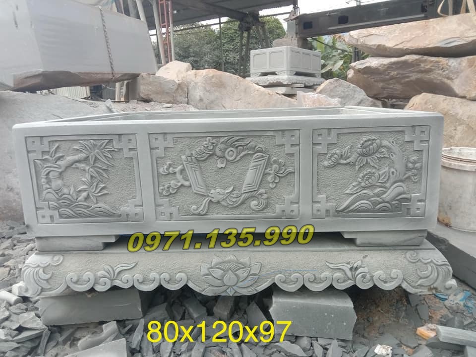 | Chậu dài để sân vườn | 100 x 40 x 50 cm | Đá xanh/đá vàng | 25.000.000 – 90.000.000 VNĐ |