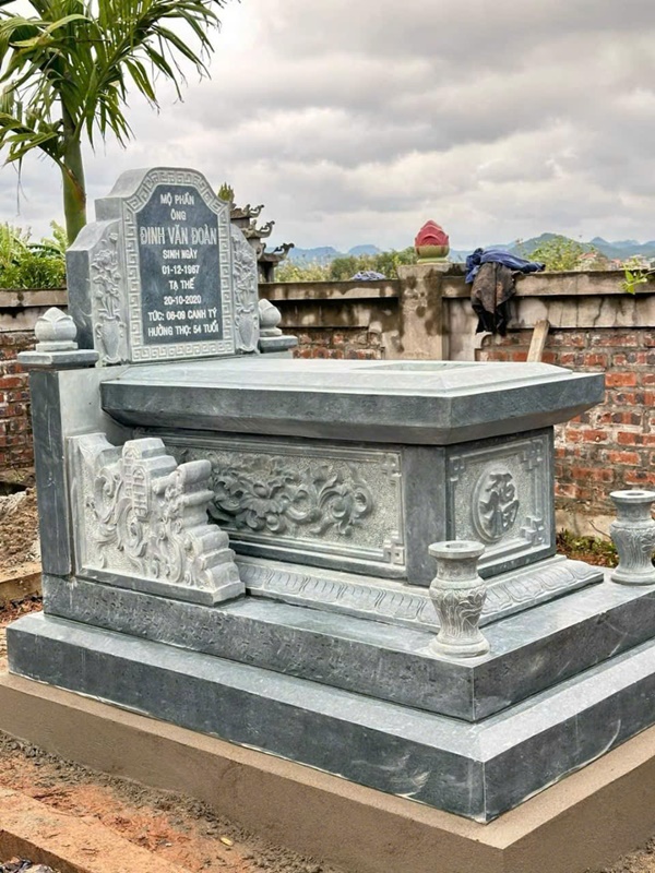 - Đặc điểm nổi bật: Chất liệu đá bền bỉ, chạm khắc đẹp mắt, bảo vệ mộ phần khỏi tác động của thời tiết.