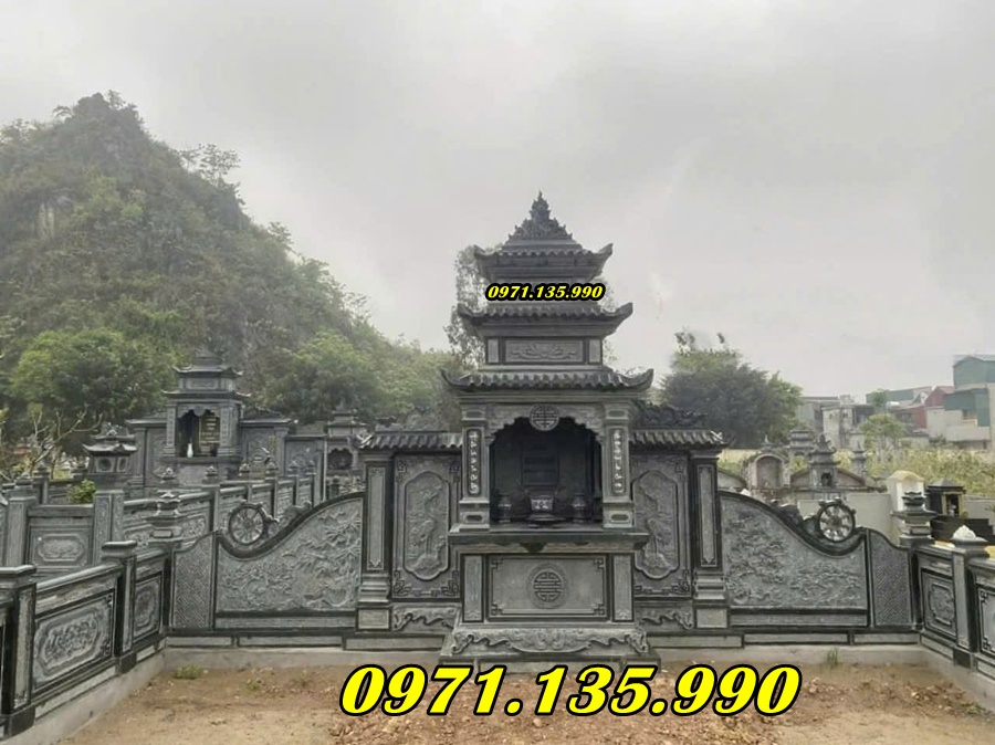 Đá xanh tự nhiên được sử dụng nhiều trong xây dựng khu lăng mộ gia tộc nhờ độ bền cao và màu sắc trang nghiêm.