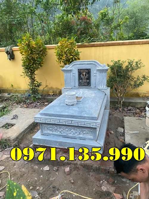 - Mô tả: Mộ Công Giáo bằng đá được thiết kế đặc biệt với hình ảnh cây thánh giá và các hoa văn tôn giáo như thiên thần, cây nho. Mẫu mộ này mang tính tôn giáo sâu sắc, thể hiện lòng tôn kính và đức tin của gia đình.