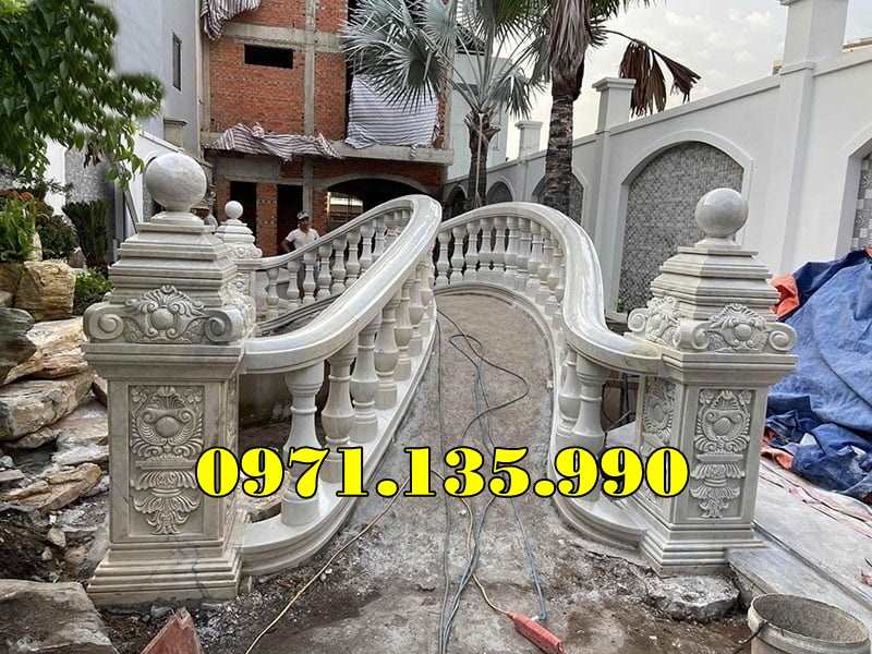 - Lan can đá cong: Lan can cong không chỉ mềm mại và uyển chuyển mà còn rất phù hợp với các công trình có kiến trúc mang đặc điểm mềm mại.