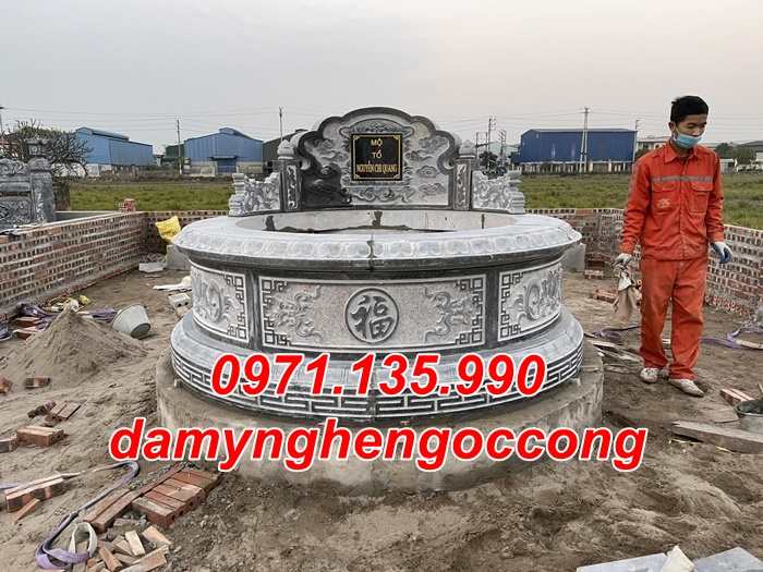 Mộ tròn mộ tam cấp tam sơn đơn giản còn thể làm giật nhiều cấp (3 cấp, 5 cấp, 7 cấp … ) và kích thước quan trọng đó là đường kính phủ bì của ngôi mộ. Đường kính mộ tròn nên làm là : 81 cm, 107 cm, 117 cm, 127 cm, 167 cm.Các ngôi mộ tròn lớn đã tồn tại từ lâu đời thì có thể làm lớn hơn như 232 cm, 303 cm, 330 cm, 390 cm …Mộ đôi đá dùng cho hai hoặc nhiều người, để có kích thước mộ đôi cân đối thì chiều mặt tiền thường lớn hơn hoặc bằng chiều sâu. Ví dụ một số kích thước mộ đôi theo thước Lỗ Ban 38,8 phong thủy như :