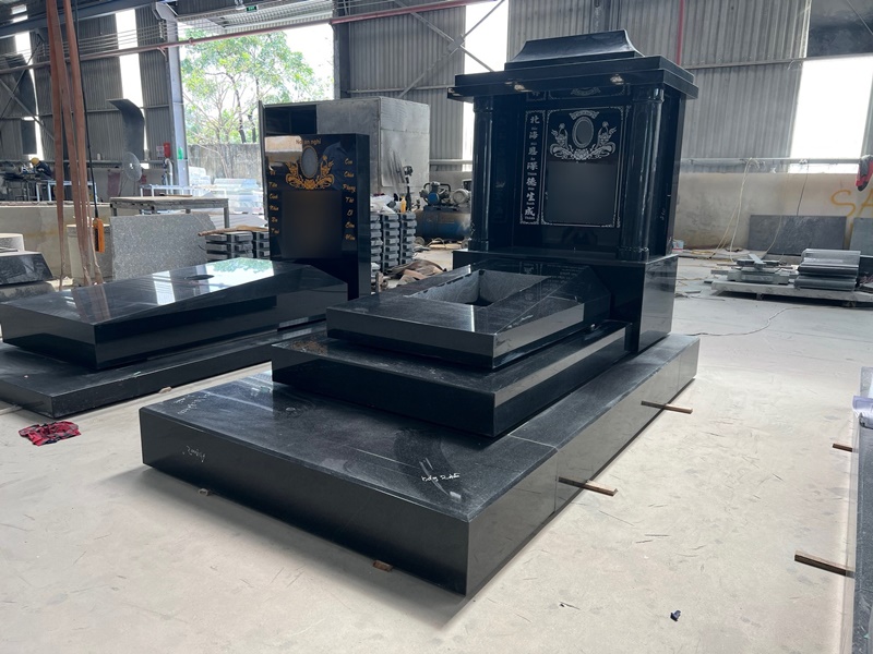 Chế tác mộ đá granite với nhiều kiểu dáng và kích thước khác nhau, từ mộ đơn, mộ đôi đến mộ tam cấp, lăng mộ.