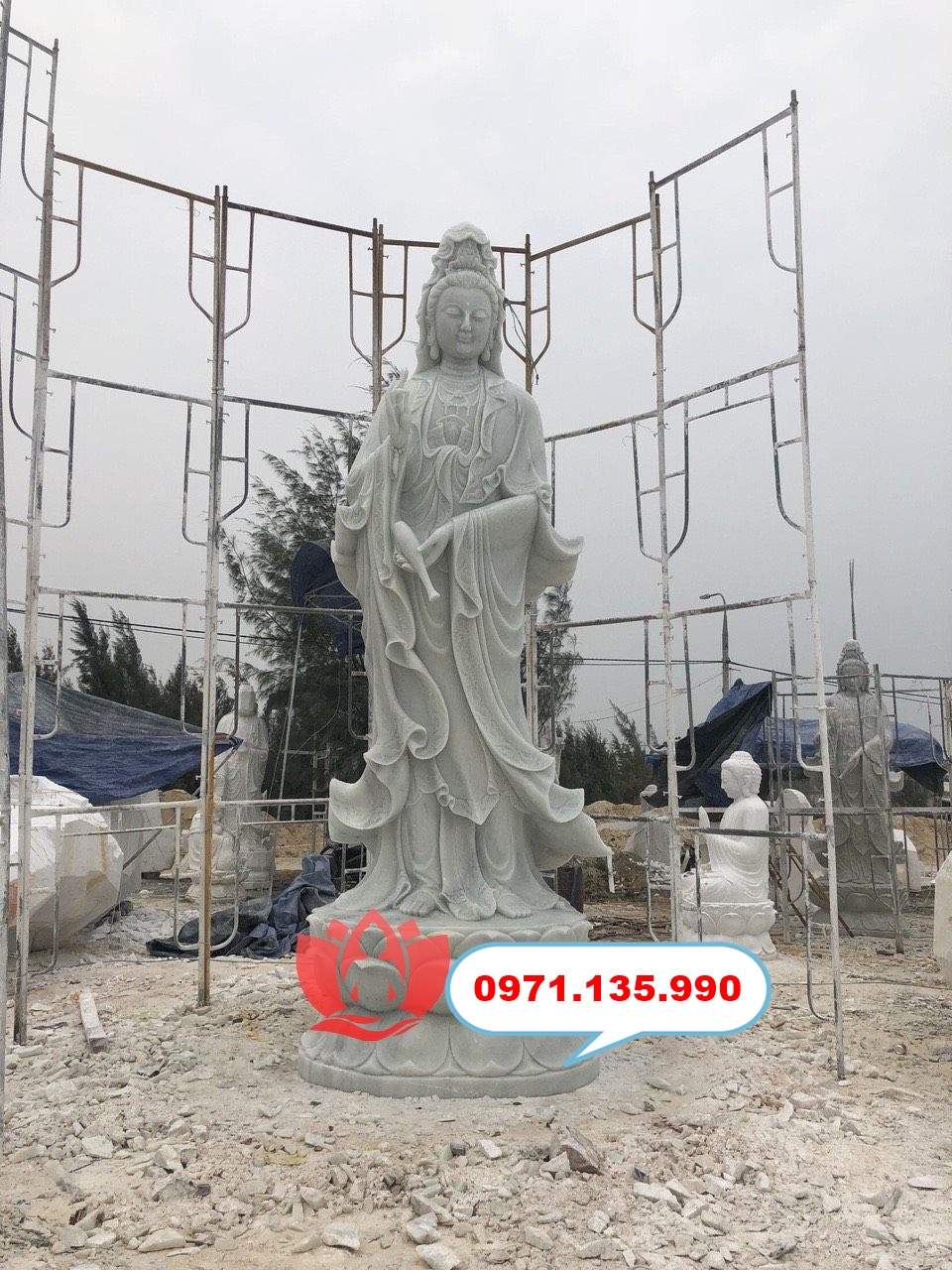 🔶 2. Giá tượng Quan Âm đá cỡ trung – lớn (ngoài trời, sân vườn, chùa)