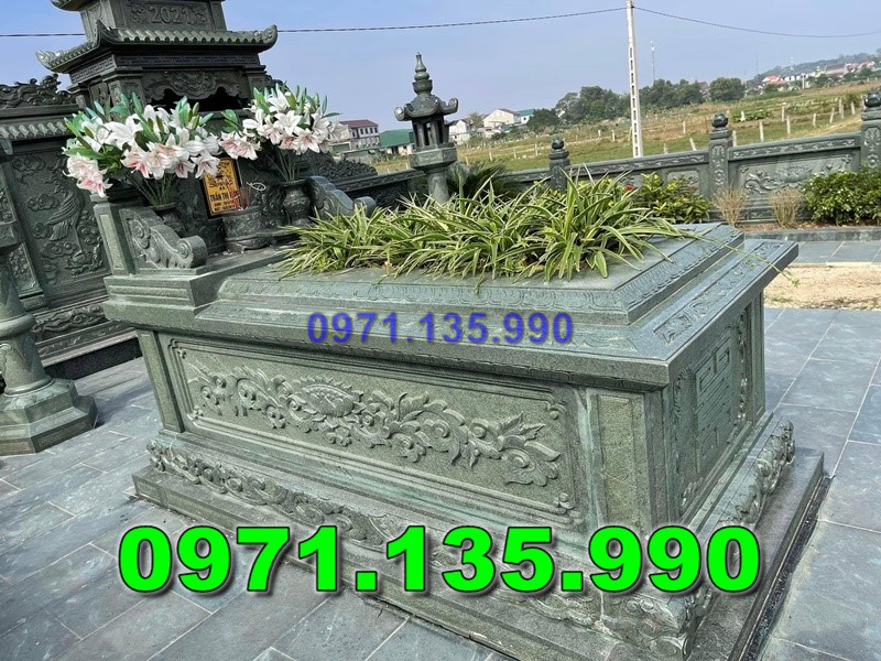 - Bia mộ đá xanh: Thường được khắc thông tin về người đã khuất như tên, ngày sinh, ngày mất, và các dòng chữ tưởng niệm. Bia mộ cũng thường được làm từ đá nguyên khối và được gắn cố định vào phần mộ chính.