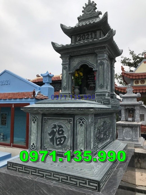 - Bia mộ đá xanh: Thường được khắc thông tin về người đã khuất như tên, ngày sinh, ngày mất, và các dòng chữ tưởng niệm. Bia mộ cũng thường được làm từ đá nguyên khối và được gắn cố định vào phần mộ chính.
