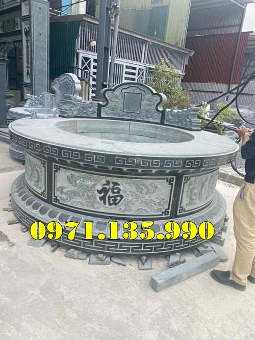 Mộ tròn mộ tam cấp tam sơn đơn giản còn thể làm giật nhiều cấp (3 cấp, 5 cấp, 7 cấp … ) và kích thước quan trọng đó là đường kính phủ bì của ngôi mộ. Đường kính mộ tròn nên làm là : 81 cm, 107 cm, 117 cm, 127 cm, 167 cm.Các ngôi mộ tròn lớn đã tồn tại từ lâu đời thì có thể làm lớn hơn như 232 cm, 303 cm, 330 cm, 390 cm …Mộ đôi đá dùng cho hai hoặc nhiều người, để có kích thước mộ đôi cân đối thì chiều mặt tiền thường lớn hơn hoặc bằng chiều sâu. Ví dụ một số kích thước mộ đôi theo thước Lỗ Ban 38,8 phong thủy như :