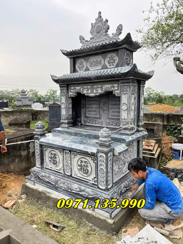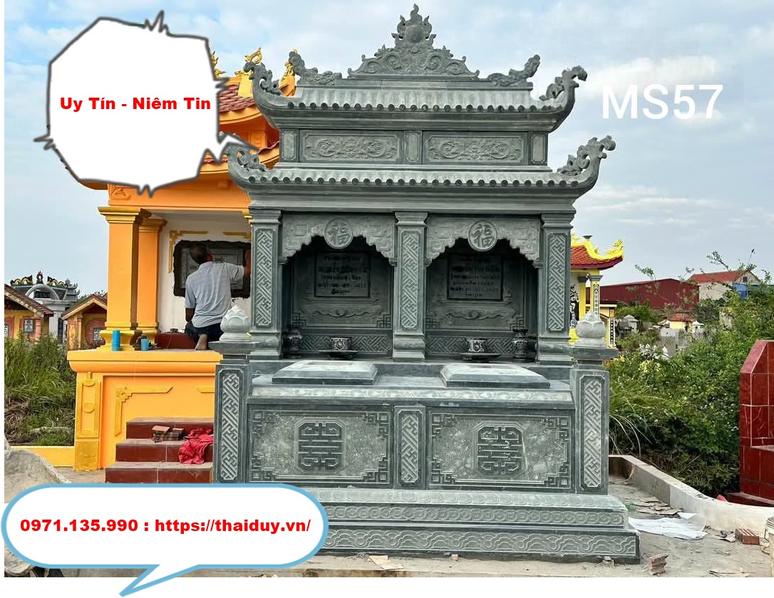 • Mộ Đôi Đá xanh rêu Ninh Bình: Màu sắc trang nhã, chạm khắc đẹp, độ bền cao.