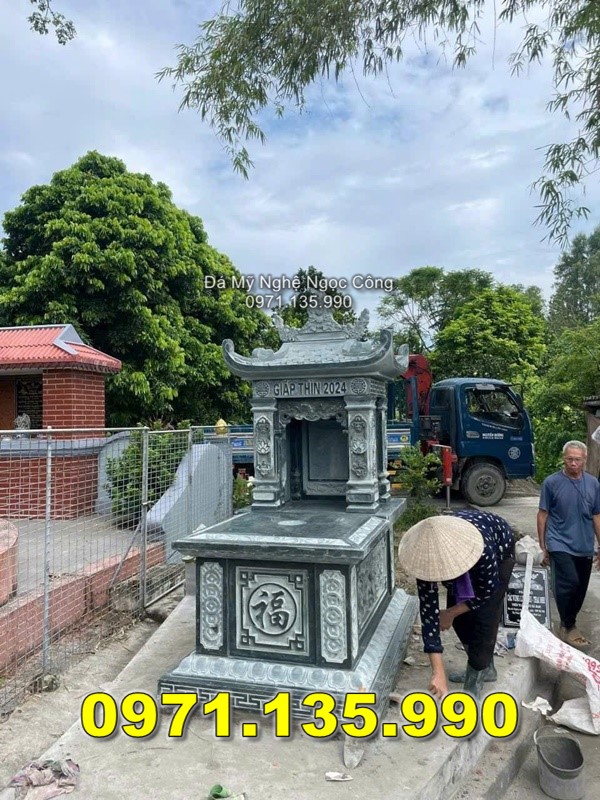 - Đặc điểm nổi bật: Chất liệu đá bền bỉ, chạm khắc đẹp mắt, bảo vệ mộ phần khỏi tác động của thời tiết.