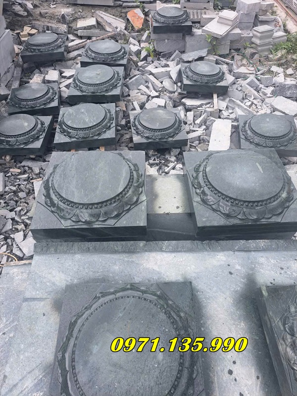 Chân đá vuông → cạnh vuông nên gấp ~1,5 lần đường kính cột (ví dụ: cột tròn 28 cm → đá vuông cạnh 45 cm).
